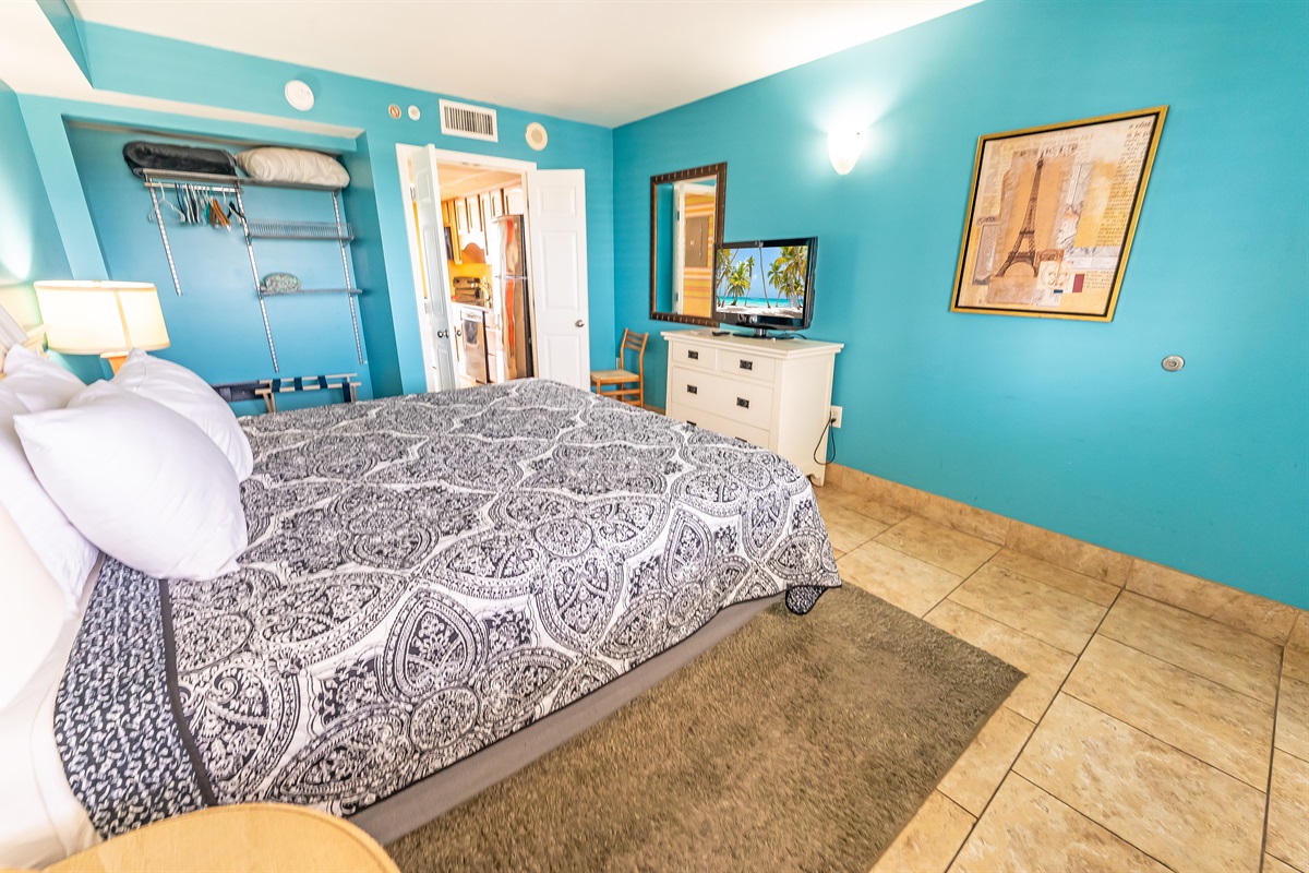 - Drift into a peaceful sleep in this inviting king sized bed with plush bedding - Wake up feeling refreshed in a bright, stylish room with a beachy vibe - Enjoy your favorite shows on the flat screen TV before unwinding for the night