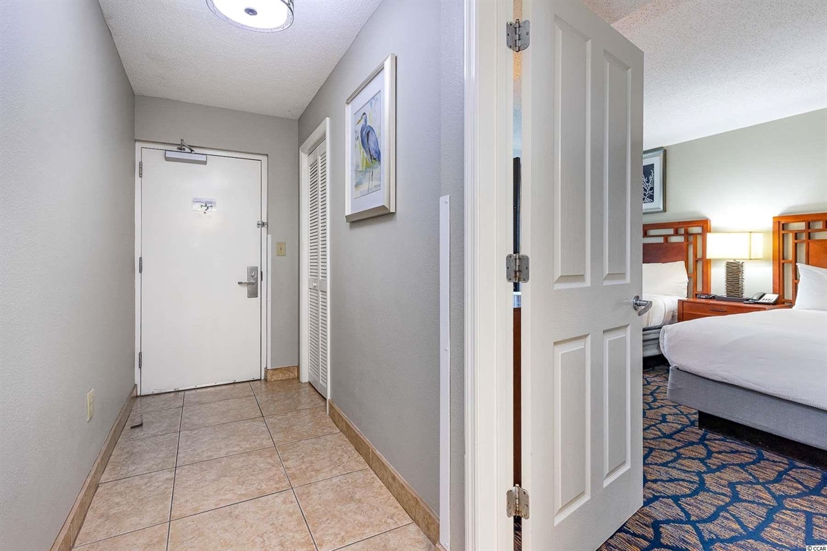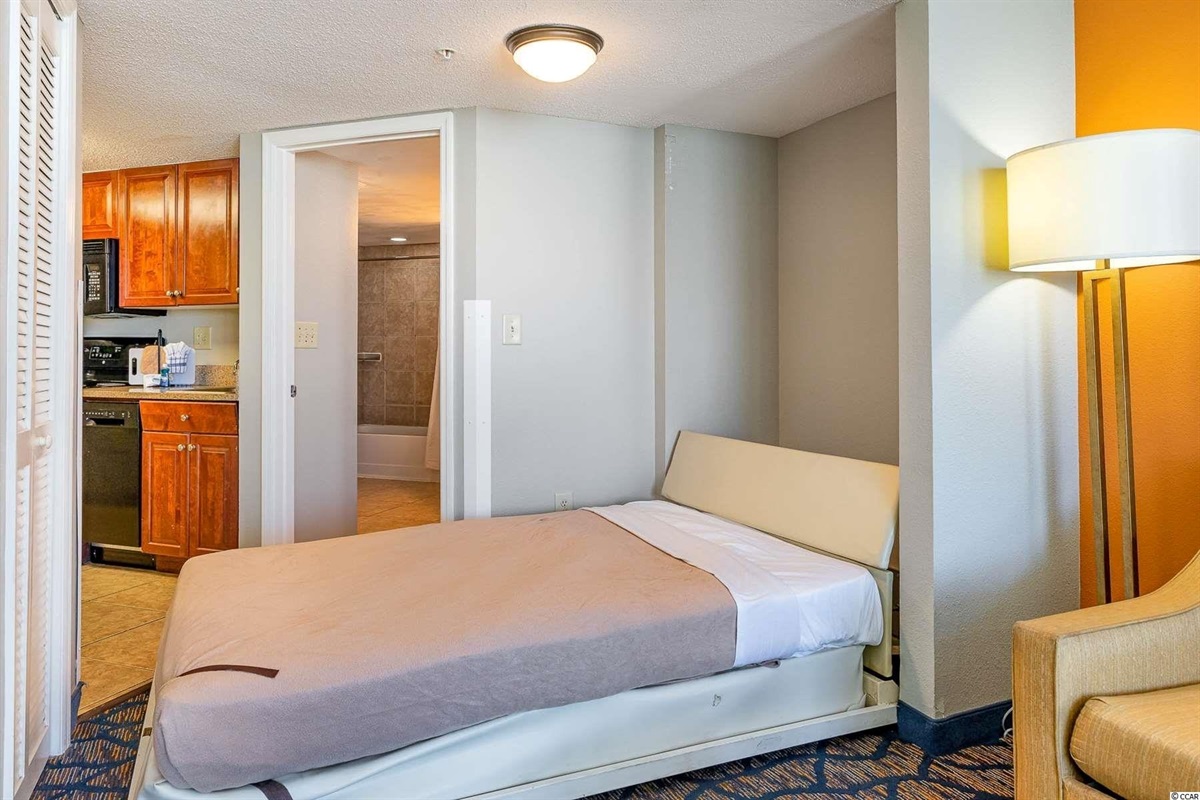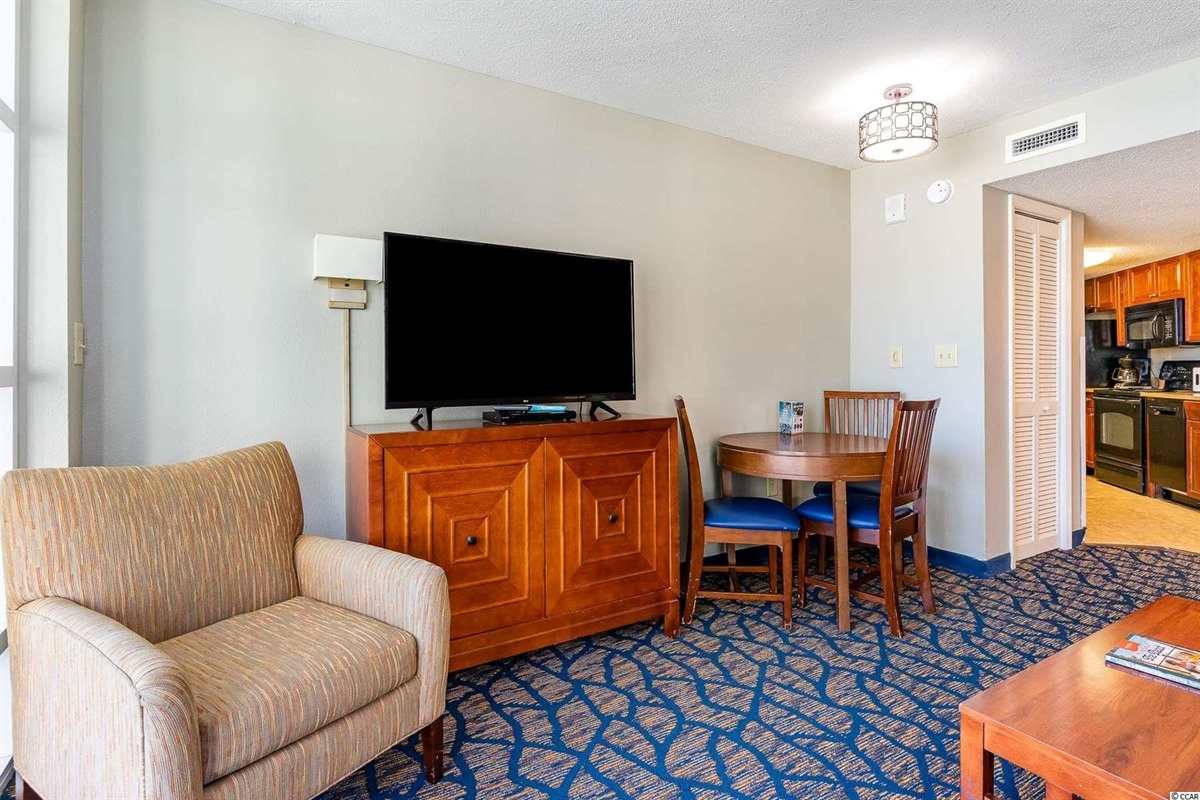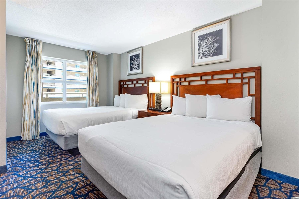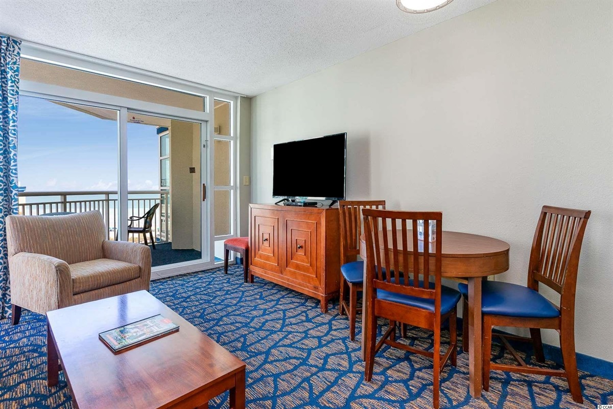 Beautiful fully furnished oceanview 1 Bedroom at Dunes Village Resort. Enjoy stunning ocean views from the balcony, perfect for your morning coffee or evening cocktails. The unit includes a kitchen with a stove, microwave, and full-sized fridge. It features 2 Queen beds, a Sleeper Sofa, and a Murphy bed, along with a dining table. Onsite amenities include outdoor and indoor pools, water slides, kiddie pools, a lazy river, hot tubs, a sauna, a fitness room, an onsite restaurant serving three meals, a poolside Tiki bar, and Starbucks Coffee. The 30,000-square-foot indoor water park offers a Lazy River, Jacuzzi hot tubs, two adult-sized water slides, and a children's pool and game room with pool tables and other arcade games. Abundant amenities await you at this beachfront resort, and best of all, free WiFi! "Conveniently located and within steps of the beach," just 7 miles from the airport, 5 miles from Family Kingdom, and 2 miles from Myrtlewood Golf Course. Many other restaurants and attractions are nearby, including Broadway at the Beach, Market Common, and Ripley's Aquarium. This oceanview condo sleeps 8, featuring 2 Queen beds, a Sleeper Sofa, and a Murphy bed, along with a private bathroom and full-sized appliances. Wake up to a sunrise on your private balcony overlooking the ocean.