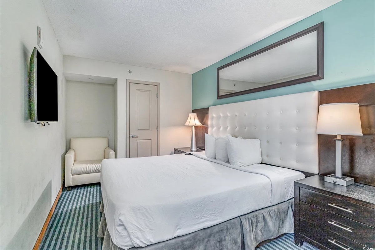 1 Bedroom • 1 Bathroom 1 Bath • Sleeps 1-4Oceans One 1707 at Big Fish Rentals. This amazing condo features a King bed in the suite with a private balcony located on the 17th floor! It is modern and contemporary, accommodating up to four guests. Situated in Myrtle Beach within the Ocean One Resort, it is one of the newest buildings in the area, showcasing ultra-modern decor. The condo also includes a pullout couch for your entire family. The bathroom is equipped with a spa garden tub complete with jets. Enjoy heated pools, a private ocean balcony, a lazy river, and hot tubs!