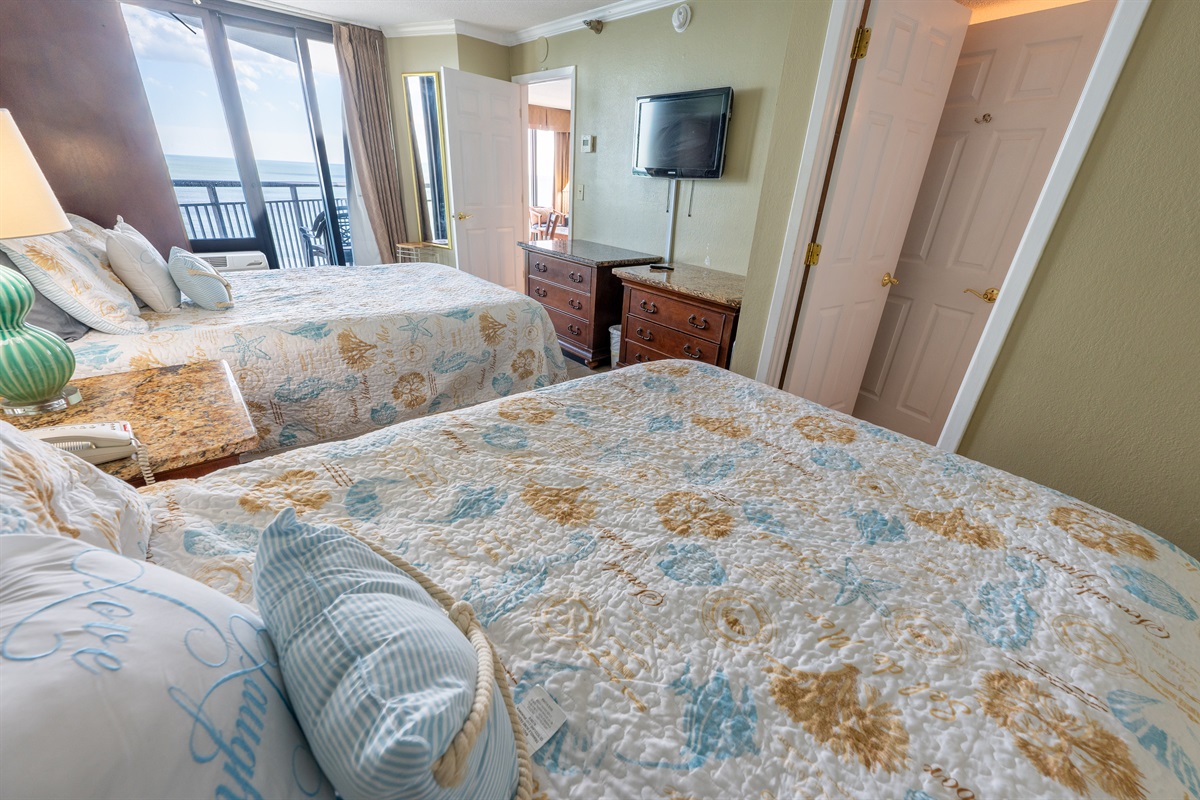 1 Bedroom • 1 Bathroom 1 Bath • Sleeps 1-4Patricia Grand 1806 at Big Fish Rentals... This elegantly furnished 1-bedroom, 1-bathroom oceanfront unit is on the 18th floor, offering breathtaking ocean and shoreline views. Unlike other 1-bedroom units, the front door opens to a foyer, not directly to the bedroom. Our condo, a genuine one-bedroom, accommodates six people comfortably, featuring two queen beds in the bedroom. The expansive, nearly wall-to-wall glass in the living room ensures that you can savor stunning beach and ocean views from every corner. The kitchen boasts granite countertops and stainless steel appliances, including a full-size refrigerator/freezer, oven/stove, and microwave. Equipped with utensils, toaster, coffeemaker, pots and pans, and more, the kitchen is ready for your culinary needs. We provide a complete set of bath towels, sheets, and blankets, and there's even a washer/dryer conveniently located on the same floor. Experience the luxury of seaside living in this well-appointed condo. The Patricia Grand Resort Hotel delivers everything you anticipate from an oceanfront resort hotel and more. From family-friendly dining to fantastic swimming pools, this Myrtle Beach hotel, both spacious and affordable, ensures a delightful and unforgettable stay for the entire family. Whether you're unwinding on the oceanfront pool deck, engaging in a workout at the fitness center, or leisurely floating down the indoor lazy river, the options for enjoyment are plentiful. Families with kids under 18 benefit from complimentary stays, and the little ones can amplify the fun in the outdoor kiddie pool. Make a point to explore Grand Central Station, an on-site oceanfront restaurant and lounge that operates seasonally for breakfast and dinner. Additionally, the gift shop provides an opportunity to pick up a special souvenir to commemorate your stay. The Patricia Grand boasts fantastic facilities, including an indoor heated pool, hot tubs, a kiddie pool, a lazy river, an outdoor pool, hot tubs, a sundeck/lawn, a fitness center, a business center, a convenience store, and the Track Espresso Cafe offering Starbucks. Guests can also enjoy the seasonal pool bar at Penn Station and the Central Station restaurant with ocean views. Additional amenities include a parking garage, valet service, and concierge. Situated in the heart of Myrtle Beach, this resort is conveniently close to the Convention Center, Sports Center, Sky Wheel, Pavilion, Broadway at the Beach, as well as various shopping and dining options. Note: Up to 2 small pets allowed (25lbs max) allowed with $50 per pet fee - Laundry Areas on certain floors