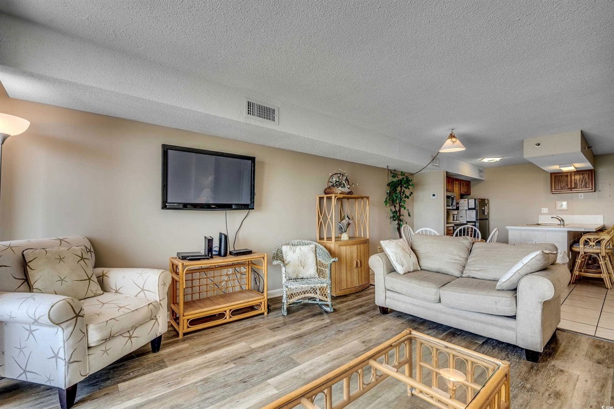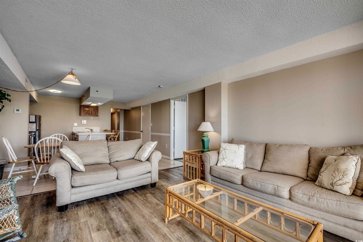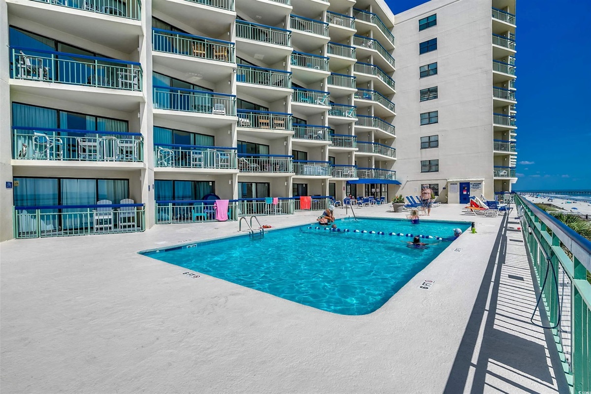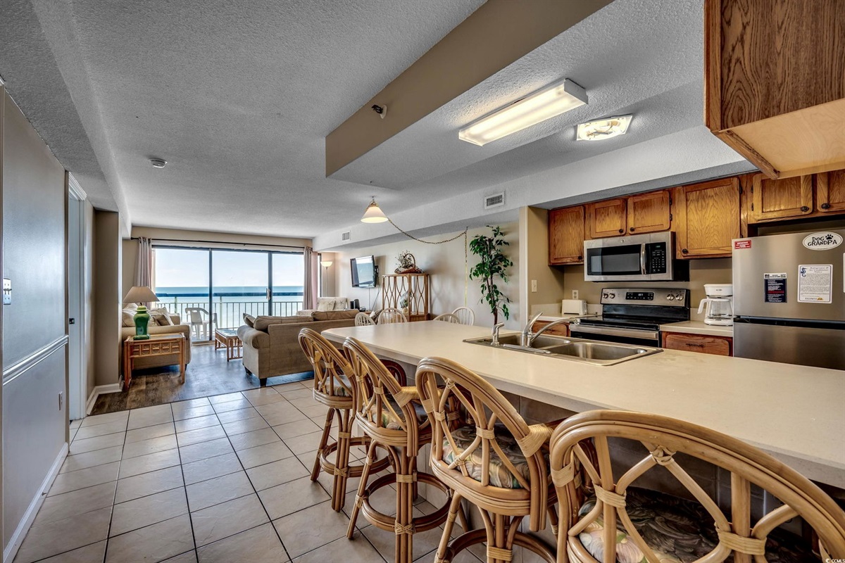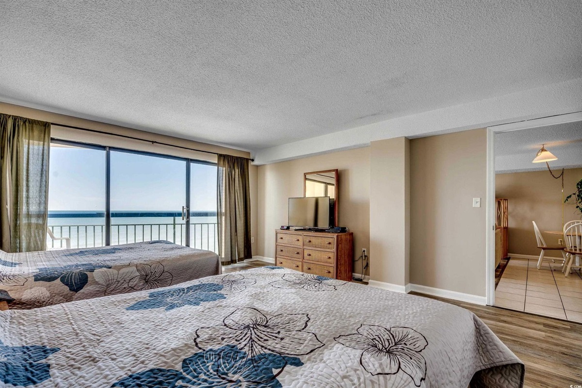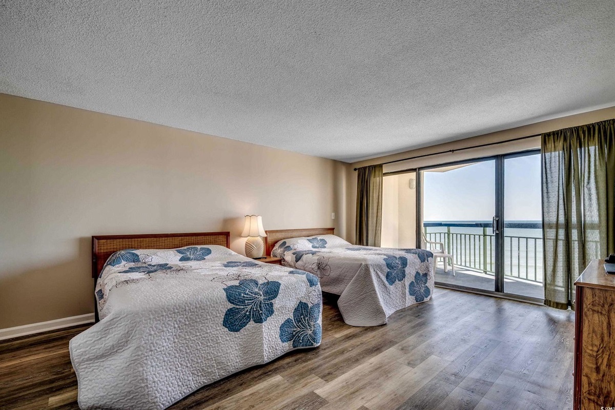 This beautiful 2-bedroom, 2-bath on the 7th Floor at The Oceans Highrise is steps from the beach at North Myrtle Beach. Enjoy beautiful beaches, heated pool, and hot tubs throughout the year. Great location, centrally located in North Myrtle Beach! This condo is comfortable with all the extras you would expect in a beachfront condo. This is a 2-bedroom, 2 Bathroom condo that sleeps up to 8. It features 2 Queen Beds, 2 Twin Beds in the second bedroom and a Sleeper Sofa in the living room. The kitchen has full-sized appliances for cooking and entertaining guests. Great condo with a great view of the beach!
